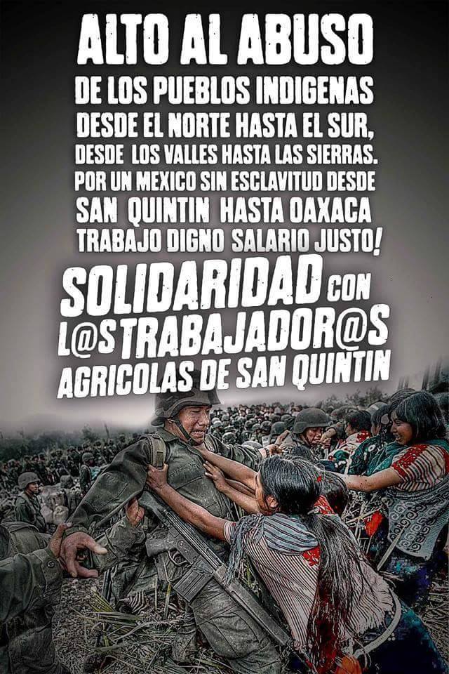 Los jornaleros del valle de San Quintín y de Baja California, agotaron todos los medios considerables aun dialogo pacifico para encontrar una solución. A las múltiples violaciones, a los derechos laborales y humanos, por parte de los empleadores.