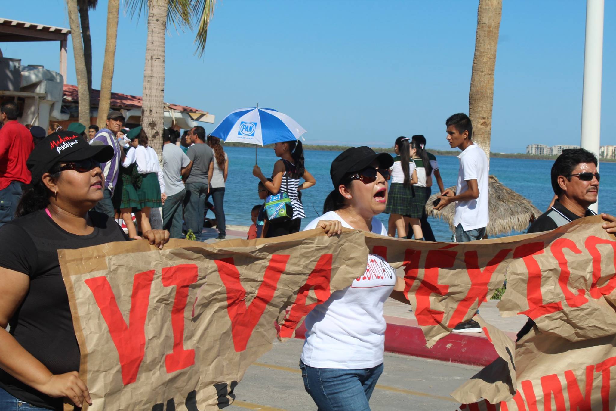 Antes de eso, se acercaron dos guaruras de Guayabera de la subsecretaria general de gobierno quien estaba cubriendo la manifesatción por parte de la Radio Zapatista Sudcaliforniana y en tono de amenaza dijeron que no se olvidara que «era un desfile militar».