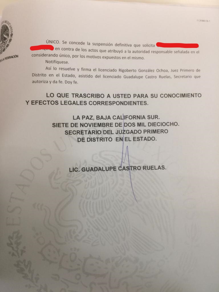 En primera instancia, queremos hacer del conocimiento de todas las personas que habitan Baja California Sur y de las que están preocupadas en la lucha ciudadana por el agua y la vida, aquí y fuera del estado, que ciudadanos con un alto valor cívico han interpuesto demandas ciudadanas en contra del resolutivo de la Manifestación de Impacto Ambiental (MIA), otorgado por la Dirección General de Impacto y Riesgo Ambiental (DGIRA) de la Secretaría de Medio Ambiente y Recursos Naturales (Semarnat) a Desarrollos Zapal de forma condicionada el 12 de junio de 2014, otorgado, decíamos, de manera ilegal, violando leyes y reglamentos que regulan la materia, tanto en el ámbito nacional como el internacional.