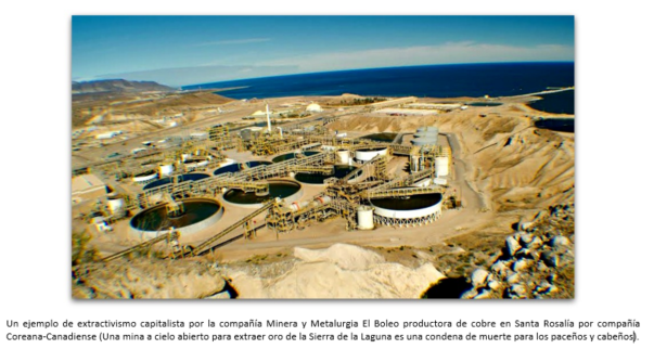 Finalmente, en el caso de los proyectos mineros para extraer oro a tajo abierto, los más conocidos LOS CARDONES y LA PITALLA aunque no se encuentran en la ciudad ni tan cerca de ella, no debemos olvidar que si bien han sido cancelados, las compañías capitalistas canadienses que las promueven a través de compañías capitalistas nacionales conservan las concesiones minera por 50 años, ya que el gobierno de López Obrador no las ha cancelado, lo que siguen representando un peligro real para La Paz como ciudad y como municipio, así como para el municipio de Los Cabos, pues están ubicados precisamente en los sitios de mayor recarga de agua. El oro ahí se queda en la Reserva de la Biosfera Sierra de la Laguna y sus alreredores y para nadie es un secreto que el oro es una mercancía especial muy preciada en el mercado mundial y las tendencias extractivistas de la minería seguirán su curso en las siguientes décadas, así que seguimos en peligro.