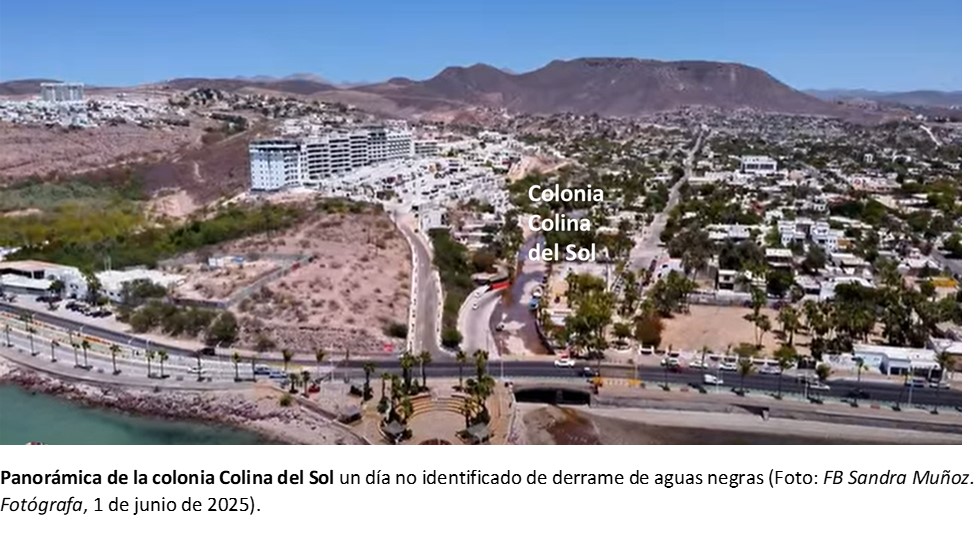 Las familias que viven en la colonia Colina de El Sol en El Esterito se encuentra frente al Molinito en el Malecón, una colonia originalmente de pescadores reconocida legalmente por el Gobierno el Territorio Sur de la Baja California y por el primer Ayuntamiento de La Paz el 12 de marzo de 1973, después de una lucha que tuvieron que dar contra el poder en defensa de su territorio para que no los desalojaran como era la intención del gobierno y de los terrateniente que decían ser propietarios de los predios. Desde entonces quedo trazada la colonia en una poligonal formada por la calle NORTE (que ahora quieren privatizar), las calles Gómez Farías, Francisco King y Álvaro Obregón; resulta que ahora son las familias más afectada en su salud y en su movilidad por el derrame de aguas negras que se presentan durante una tercera parte del año, desde hace una década a causa de unos colectores cuyos diámetros han sido rebasados y un cárcamo privatizado que ya cumplió su vida útil que por cierto solo le ha sacado provecho el desarrollo turístico “Costa Baja” para regar sus jardines y campos de golf utilizando las aguas residuales en su planta de tratamiento.