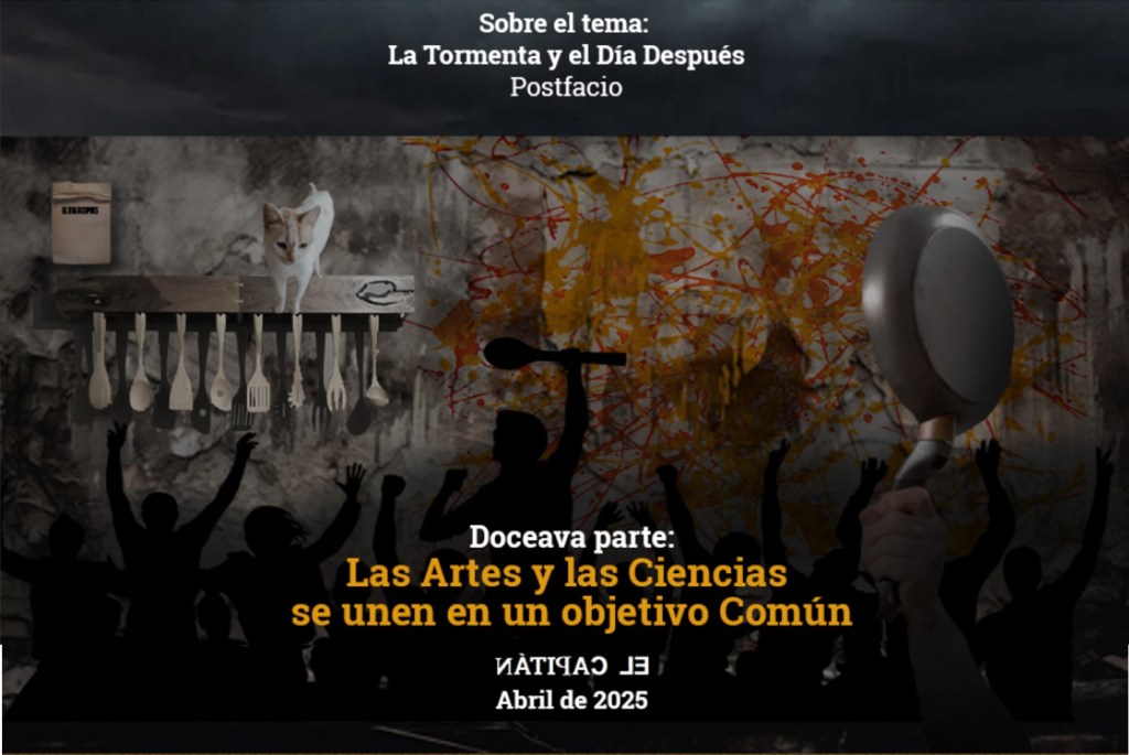 En el día después, en una comunidad ficticia se han reunido pueblos originarios, buscadoras, artistas y científicos sobrevivientes de la tormenta. Juntos enfrentan el reto de recomenzar y rehacer el mundo desde sus cimientos. En el comedor comunitario “Mastica, no tragues” se ha provocado una batalla campal debido a que, supuestamente, alguien del colectivo de Ciencias Aplicadas, aplicó las leyes de física a las catapultas, ejemplificando con las cucharas y con dulce de calabaza como munición. Los proyectiles cayeron indistintamente en artistas y científicos, provocando la respuesta lógica. Algo como el clásico “pastelazo” usado en cinematografía. En lo más álgido del bombardeo mutuo, la Doña Juanita intervino blandiendo un sartén gigante y un cucharón tamaño XXXL, convocando a la calma, el diálogo razonado y la no aplicación unilateral de aranceles. La última vez que se vio, el Capitán estaba parapetado detrás de ollas y comales, con un casco protector modelo “Predator” (armadura +100, movilidad -500, -no se ve nada-). La banda sonora (“Yo no fui”, de Consuelito Velázquez) era interpretada por los musicales. A este connato de guerra, las reseñas posteriores lo nombrarían “La Guerra del Dulce de Calabaza. Los Inicios”. (Cfr: Parte Seis: Ciencias Aplicadas. Oct 2024)