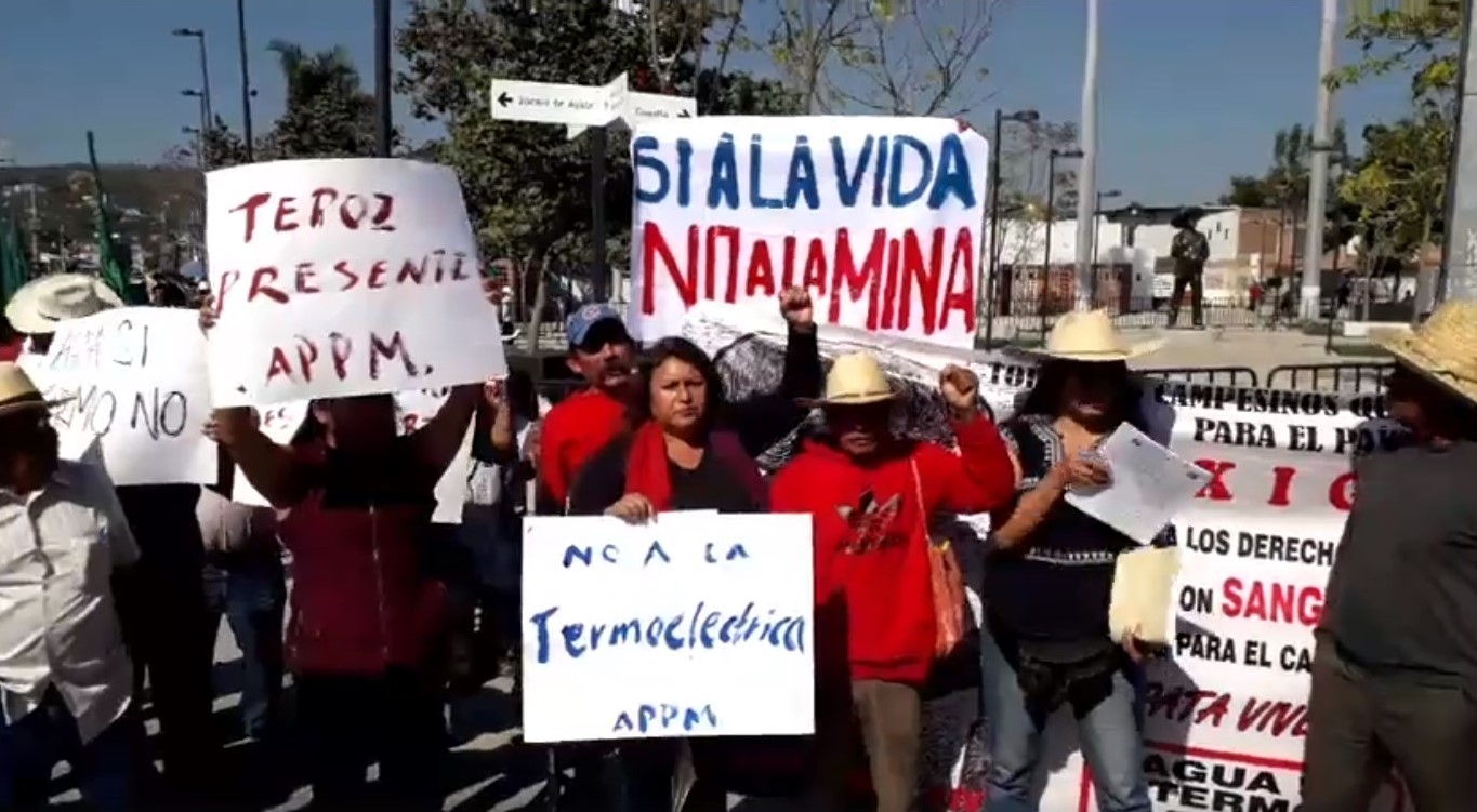 Exigimos al Presidente de México cumpla su palabra de cancelar la Termoélectrica como lo dijo en campaña del 2014. Así mismo el esclarecimiento del asesinato del comunicador indígena Samir Flores Soberanes.