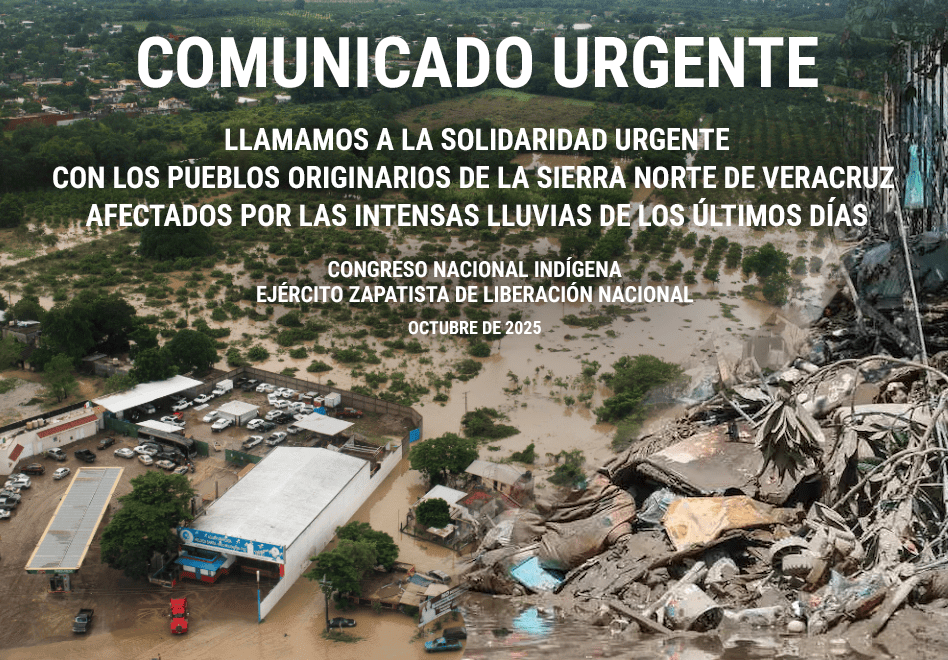 Con gran preocupación hemos visto como las intensas lluvias producto de diversos fenómenos meteorológicos, han causado daños de gran magnitud en diversos estados del país, provocando la muerte de decenas de seres humanos y la destrucción de pueblos y ciudades a lo largo de la geografía nacional y de manera particularmente grave en el estado de Veracruz. Nuestras hermanas y hermanos integrantes del Congreso Nacional Indígena en el norte de Veracruz nos han informado del daño que estos fenómenos naturales han causado en las comunidades indígenas y campesinas de dicho estado y en particular en los pueblos del Totonacapan y la Sierra Norte.