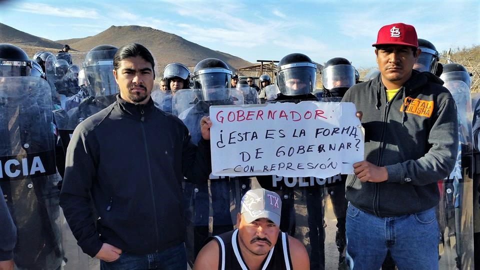 Basta con hacer memoria de la represión del 2 de febrero del 2016, cuando el gobernador Carlos Mendoza Davis descaradamente acató las órdenes de los ejecutivos de Tres Santos y reprimió con la fuerza pública a pescadores de Punta Lobos, sus familias y personas solidarias con quienes desde octubre del 2015 habrían montado un campamento a la orilla del camino vecinal que lleva a la playa y a la construcción de la primera fase del proyecto de Tres Santos. Ingenuamente el oficial al mando del violento operativo del 2 de febrero, justificó su acción frente al representante legal de los coopertivistas y más de 20 testigos, entre ellos quien aquí escribe, haciendo público un documento firmado por ejecutivos de Mira Companies donde explicitamente dice que requiere la fuerza del estado para seguir con la obra. El gobernador hizo caso omiso a lo que más de 100 familias que historicamente han vivido de la pesca ribereña en Todos Santos le han venido diciendo desde hace meses. Sin embargo solo bastó una solicitud de los representantes de Tres Santos, para intentar callar a macanazos a los pescadores de Punta Lobos.